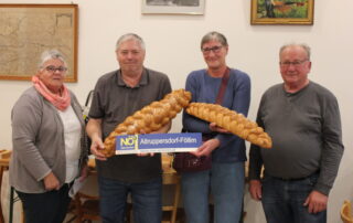 Am 24. Oktober fand in der Alten Schule das traditionelle Striezlposchn der Seniorengruppe Altruppersdorf-Föllim statt und lockte zahlreiche spielfreudige Teilnehmerinnen und Teilnehmer an die Tische. In gemütlicher Atmosphäre und bei angeregten Gesprächen wurde um die begehrten Striezl gewürfelt. Den Herrenstriezl sicherte sich Otto Zeller aus Föllim, bei den Damen durfte sich Maria Kratochvil über den Sieg freuen.